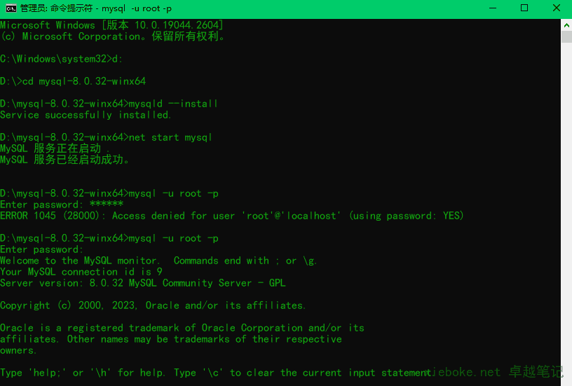 上面步骤成功之后,可以在 cmd 输入如下命令进入MySQL: