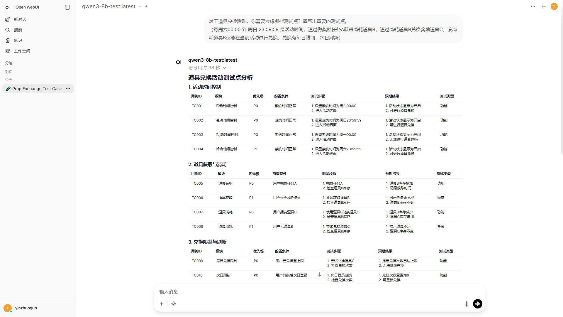 1. 生成测试用例时必须包含:用例ID、模块、优先级(P0-P2)、前置条件、测试步骤、预期结果、测试类型(功能/边界/异常)
