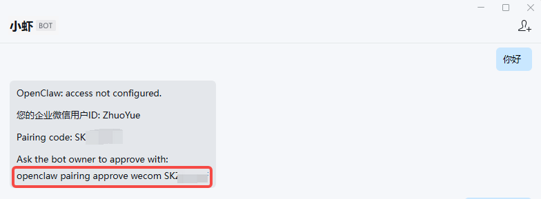 openclaw pairing approve wecom S*****F
