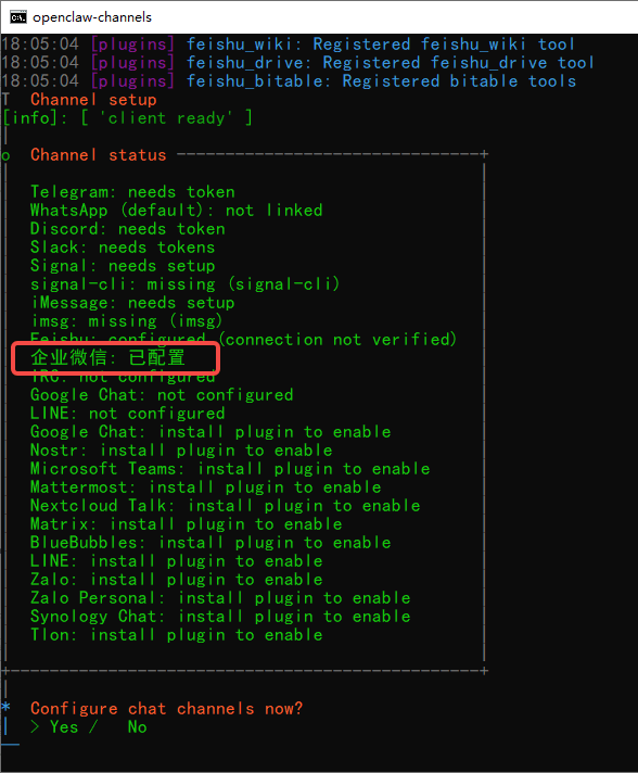 添加企业微信渠道